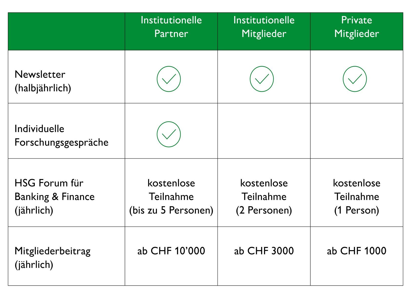 Die Fördervereinigung des Schweizerischen Instituts für Banken und Finanzen wird von Banken, Unternehmen des Finanzsektors sowie mit dem Institut verbundenen Privatpersonen getragen. Sie fördert den engen Austausch zwischen Wissenschaft und Praxis, um einen kontinuierlichen Wissenstransfer zwischen Wissenschaft und Finanzindustrie sicherzustellen. Die Mittel aus Mitgliedsbeiträgen und Zuwendungen werden schwerpunktmäßig zur Finanzierung laufender Forschungsprojekte mit Praxisbezug eingesetzt. Insbesondere wird der wissenschaftliche Nachwuchs gefördert, indem beispielsweise Datenkauf, Konferenzbesuche und Forschungsaufenthalte von Doktorierenden, Postdocs sowie Assistenzprofessorinnen und -professoren mitfinanziert werden.